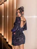 Sruby vestido feminino sexy sem costas bodycon vestido lindo lantejoulas multicolorido festa de manga comprida vestido 2021 outono e inverno novo