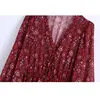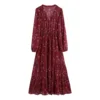 Plus tamanho plissado casual vestido feminino boêmio v pescoço impressão midi vestidos outono inverno 2021 elástico manga longa vermelho vestido africano