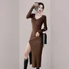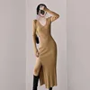 Moda feminina saia de malha francês fenda sexy vestido de primavera e inverno, joelho alta hip malha apertado fitting feminino dress2022