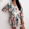Primavera feminino chiffon decote em v vestido de impressão flor casual manga longa vestido curto feminino boho lazer a linha festa 2021