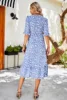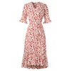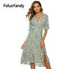 Foluxyandy v pescoço feminino verão chiffon vestido floral rendas até midi a linha de manga curta babados vestidos ywnj23