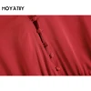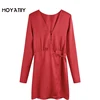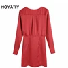 Moyatiiy feminino 2022 fashio com laço cetim vermelho mini vestido elegante com decote em v vestidos de festa manga longa dia de natal vestidos femininos