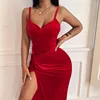 Liyong ruched alta divisão vestido feminino sem costas cinta de espaguete sexy midi vestido de festa à noite bodycon vestidos