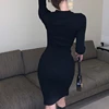 Primavera outono feminino de malha elegante vestido preto manga longa bodycon sexy magro vestidos femme moda outerwear roupas