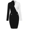 2022 primavera vestido feminino estiramento collants preto branco retalhos festa de trabalho escritório senhoras casual longo mangas compridas vestido apertado