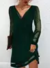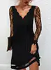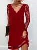 2022 nova primavera roupas femininas cor pura rendas mangas laterais com decote em v vestido pulôver