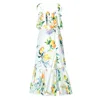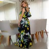 Tamanho grande vestido de verão novo longo suspender saia magro sexy babados strappy fenda vestido moda