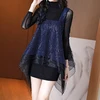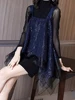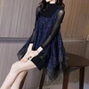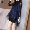 Feminino 2021 primavera e outono novas senhoras moda chiffon costura vestido fino transparente midi elegante