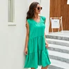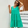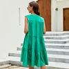 Sem mangas com decote em v mulheres vestidos midi 2022 novo verão sólida dobras retalhos boêmio casual férias vestidos de praia robe femme