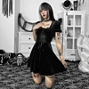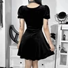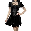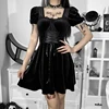 Gótico lolita puff sleeves bandagem a linha vestido sexy vintage veludo cintura alta mini vestido emo y2k japonês vestido de festa feminino