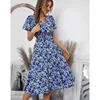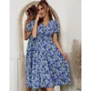 2022 dot print babados vestido de verão feminino casual v neck draw string botão vestido para a mulher do vintage vestidos brancos