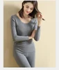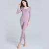 Fakuntn dropshipping feminino dralon calor conjuntos de roupa interior térmica cashmere o pescoço velo manter quente longo sem costura mangas compridas
