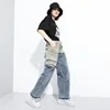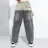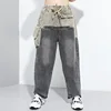 Calças jeans compridas pernas largas com bolso, cintura alta solta feminina moda outono inverno 2020