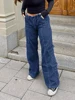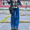 Weekeep bolso retalhos calças de brim femininas vintage cintura alta casual baggy calças retas harajuku calças compridas streetwear denim