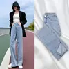 Calças femininas de verão calças de brim de cintura alta denim grande femme calças de brim de perna larga calças de brim largas de moda feminina calças de brim largas
