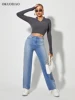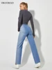 Calças de brim de cintura alta para mulheres y2k moda baggy calças jeans solto perna larga reta jean streetwear vintage lavagem azul calça casual