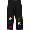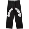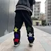 Pentagrama tecido monogrammed high street hip hop em linha reta casual ampla perna calças de brim skate calças jeans mulher y2k