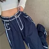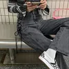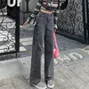 Calças de brim femininas do vintage calças de cintura alta rendas acima de grandes dimensões largas perna calças verão baggy streetwear preto azul retro roupas XS XXL