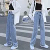 Mulher calça jeans de cintura alta roupas perna larga denim azul streetwear vintage 2021 moda harajuku calças retas