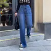 Mulheres primavera outono casual vintage cintura alta dividir jeans moda azul perna larga calças jeans feminino streetwear reta