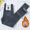 [Plus cashmere/calças individuais] esticar calças de brim de cintura alta das mulheres magro e alto pés finos primavera, outono e inverno calças apertadas
