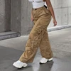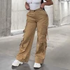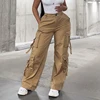 Weiyao 2021 calças de carga streetwear caqui cintura alta perna larga baggy mãe jeans mulher bolsos vintage grunge calças jeans y2k