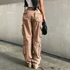 Calças de carga feminina casual hippie denim calças caqui sólida baggy cintura baixa mãe jeans feminino vintage 90s grunge streetwear