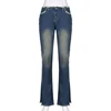 Sunny y.j. Vintage rasgado fenda y2k jeans feminino cintura baixa streetwear mãe retalhos calças de carga harajuku flare jeans denim grunge