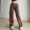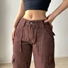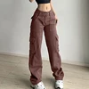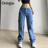 Darlingaga streetwear reta carga calças femininas sólido básico cintura alta calças de brim bolsos casuais jeans baggy vintage denim