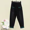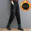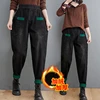 Calças de brim quentes do inverno das mulheres denim calças quentes punhos do vintage elástico calças de brim quentes mulher de cintura alta calças de brim preto y2k largas calças grandes