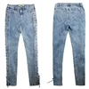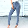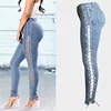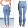 Jeans feminino multi tamanho azul magro estiramento sexy lado oco para fora rendas até casual algodão denim calças lápis calças magras