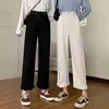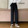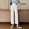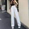 Nova primavera calças de algodão de cintura alta calças femininas em linha reta chique retro calças de brim largas calças de brim