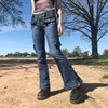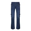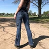 Sunny y.j. Multi bolso retalhos jeans magros mulheres cintura baixa zip up estético streetwear carga jeans azul escuro e menina vintage