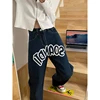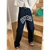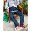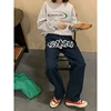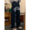 Gjbd jeans feminino azul escuro cintura alta em linha reta baggy moda calças streetwear vintage casual feminino perna larga mãe calças de brim