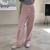 Rosa calças de brim femininas cintura alta em linha reta baggy moda calças streetwear vintage casual feminino clássico perna larga mãe denim