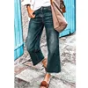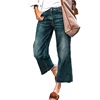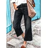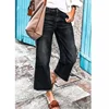 Sólido solto em linha reta perna calças de brim moda feminina casual temperamento comute preto lavado meados da cintura burr denim calças 8028