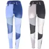 Moda feminina jeans de emenda magro casual apertado calças de cintura alta denim para o sexo feminino do vintage retalhos calças magras streetwear