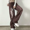 Gótico impressão baggy jeans y2k outono calças de cintura baixa vintage casual perna larga denim estética calças de carga feminina azul