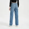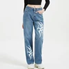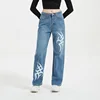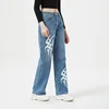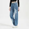 Moda feminina calças de brim cintura alta vintage impressão bolsos denim y2k streetwear solto baggy casual calças retas de grandes dimensões