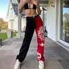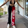 Calças de brim femininas do vintage dragão imprimir cintura alta calças jeans bolsos retos casual baggy calças largas perna grunge y2k streetwear