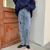 Calças de brim de cintura alta das mulheres do vintage streetwear harajuku estilo hip hop solto casual cenoura calças dos desenhos animados imprimir jeans