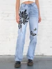 Calças de brim femininas do vintage y2k estético impresso calças de cintura alta calças de brim moda casual baggy calças retas 90s streetwear