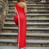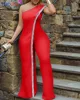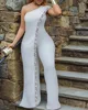 Haoohu macacão feminino irregular, um ombro larga, perna, sólido, detalhe lantejoulas, elegante, para festa de clube