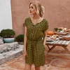 Macacão feminino, verão 2020, manga curta, pernas largas, feminino, para escritório, xadrez, casual