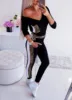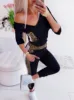 Macacão feminino com decote em v, para mulheres, com retalhos, cor e bolsos, decoração, manga comprida, estampa de leopardo, moda de rua