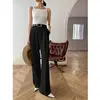 Retro zíper cor sólida selvagem reta perna larga calças femininas primavera nova moda coreana cintura alta casual calças compridas