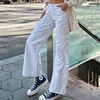 Sunny y.j. Harajuku branco sweatpants mulheres bolsos baggy retalhos calças de carga casual vintage cintura alta reta perna