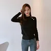 Suéter feminino liso preto com botões, blusa feminina manga longa casual outono inverno 2020