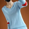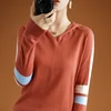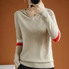 Jumper com capuz suéter feminino tricô outono 2020, blusa feminina manga comprida folgada coreana costura