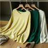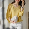 Suéter solto feminino de malha para outono, blusas femininas, pulôveres coreanos, manga de três pontos, decote em v, sólido, novo, 2020